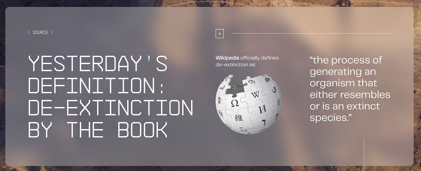 Ah, the wonderful “Wikipedia defines this term as” tactic. Webster’s dictionary defines wedding as the fusion of two hot metals, for any Office fans. Here’s where we get to Colossal’s major claim: that they can make something de-extinct. De-extinction of course, is the process of creating something that looks like or actually is an extinct animal.